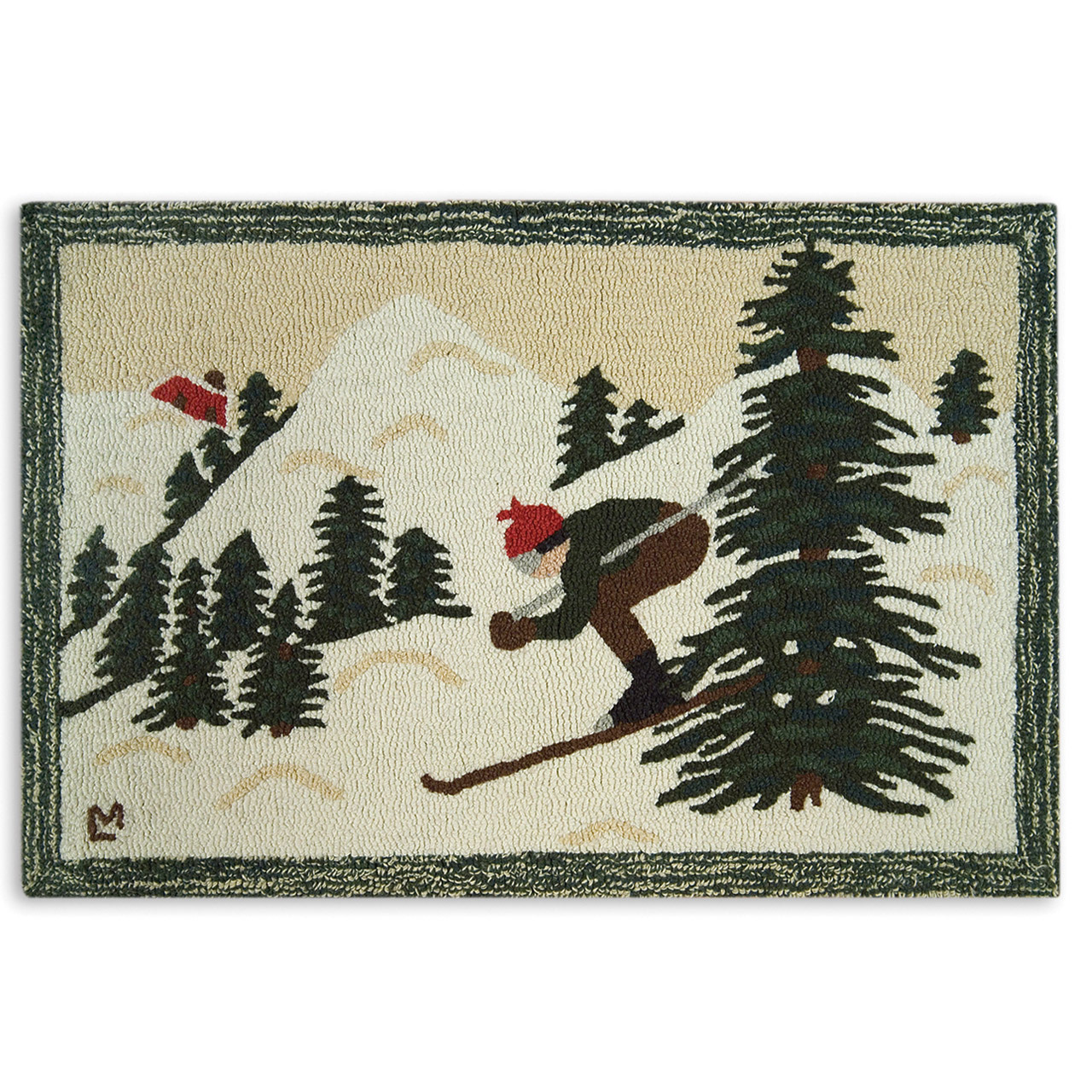 The brisk outdoors captured in 100% hand-hooked New Zealand wool. Decorative and fun, this design is great to use all winter long. A nice accent piece and a year-round reminder of wintertime fun.